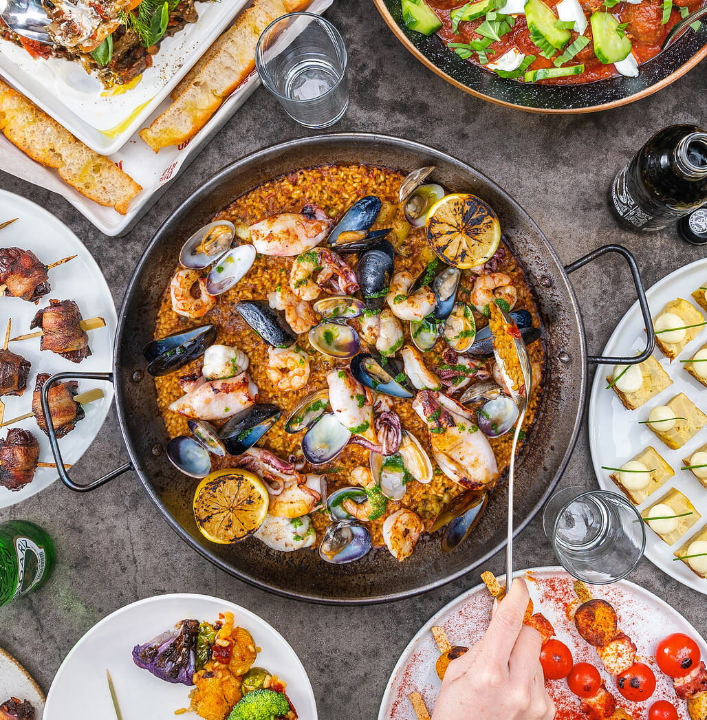 From lively happy hours to convivial paella feasts, Boqueria events bring people together over bold bites and stellar drinks in beautiful, flexible spaces. Whether it’s a team dinner, cocktail party, or wedding rehearsal, we create gatherings that leave an impression on your guests.