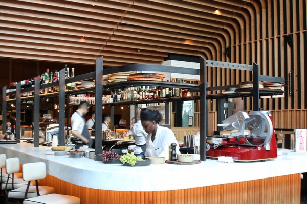 “The large, attractive space is distinctive from Boqueria’s other locations by serving breakfast, starting at 6:30 a.m. on weekdays. Other unique offerings at this good-for-groups spot is a six-spit rotisserie churning out crispy chicken and whole suckling pig.